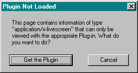 If you click on an icon or link in the Magazine which calls a video or audio clip, a warning message will appear, such as this (Netscape):