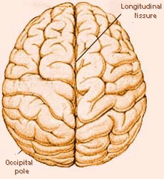 By means of a prominent groove, called the longitudinal fissure, the brain is dividid into two halves called hemispheres. At the base of this fissure lies a thick bundle of nerve fibers, called the corpus callosum, which provides a communication link between the hemispheres. The left hemisphere controls the right half of the body, and vice-versa, because of a crossing of the nerve fibers in the medulla.