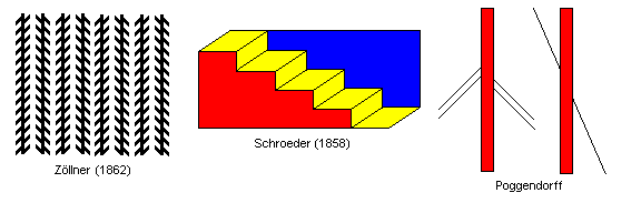 One of the most frequently mentioned illusions, called Poggendorff's illusion, is shown above at the right. His