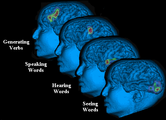 Imagens de PET funcional obtidas em diferentes funções mentais, por Michael Phelps.