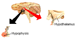 O hipotálamo, por sua vez, excita a hipófise, que libera hormônio na corrente sanguínea que está circulando no corpo. Este hormônio é capturado pelos ovários e testículos, os quais são por meio disto estimulados a liberar hormônios gonadais na corrente sanguínea. Os hormônios, tais como a oxitocina, FSH e LH atuarão perifericamente para modular os circuitos locais nos órgão sexuais mais sensíveis ao estímulo nervoso. |