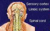 Ao mesmo tempo, os impulsos sensoriais saem da genitália, em resposta ao tato e às respostas locais (por exemplo, ereção do pênis, viajam para a medula espinhal até o cérebro, ao córtex sensorial e ao sistema límbico (o cérebro emocional), onde eles eliciam percepção consciente e reaçoes prazerosas (emocionais) prazerosas. |