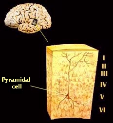 ![]() Layers of nerve fibers in the cortex I. Molecular layer II. External granular layer III. External pyramidal layer IV. Internal granular layer V.Internal pyramidal layer VI. Fusiform layer (Modified from Bear et al., 1996) |