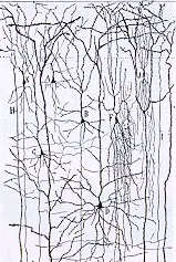 One of Cajal's many drawings of brain circuitry. Source: Bear et al., 1996 |